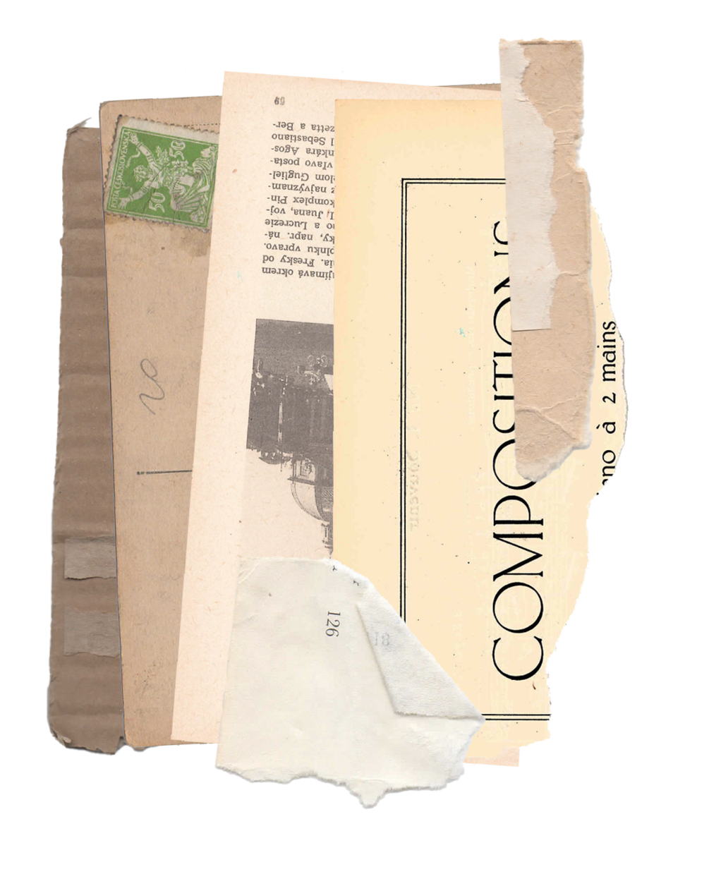 This is an archive of materials that I find aesthetically pleasing and interesting. Found pieces of paper, cardboard, and old postcards. Receipts, bus tickets, and other small fragments from my everyday life. Pages from old books and magazines that have already told their stories. Materials that were abandoned and waiting to tell stories again.